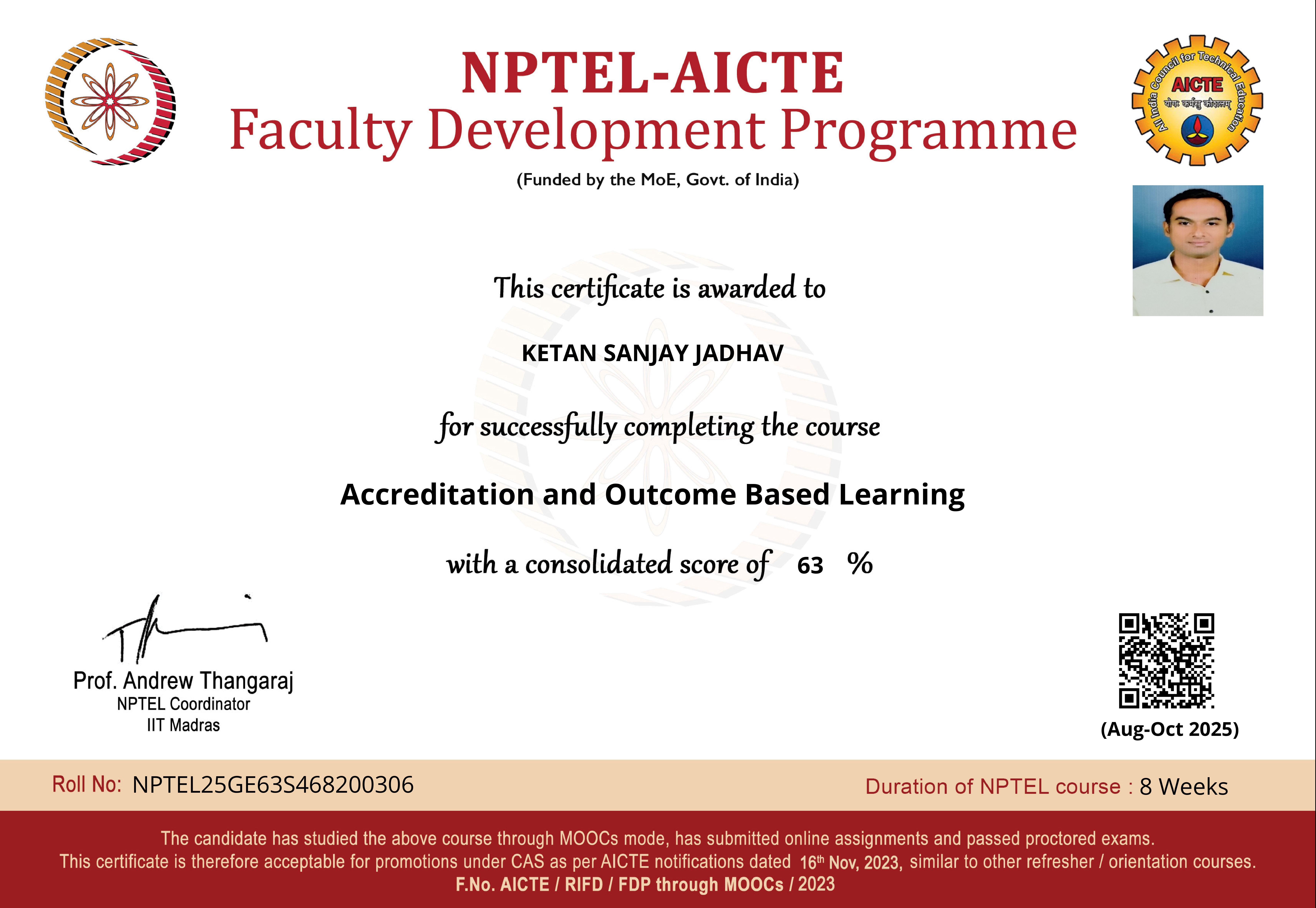MR.KETAN SANJAY JADHAV has successfully completed the course "Accreditation and Outcome Based Learning ".